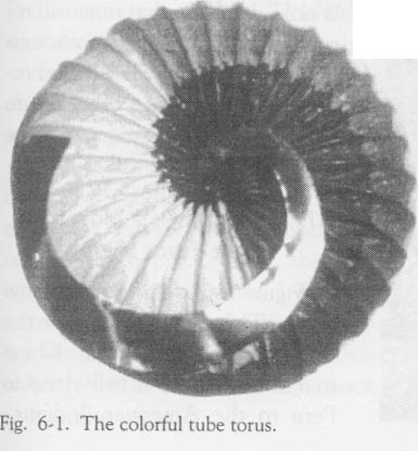 Тор - здесь именуемый трубчатым тором, поскольку этот определённый тор сформирован как внутренняя трубка (Рис.6-1 ) - уникален своей способностью складываться внутрь самого себя: он может сворачиватся внутрь или разворачиватся наружу. Во всём сущем мире ни одна другая форма такое или нечто подобное проделывать не может. Тор есть первая форма, исходящая из завершённой модели Творения и в ряду всех форм, существующих в Бытии, она совершенно уникальна.