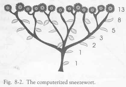 Это маленькое растение (Рис.8-2) на самом деле не существует; мы создали его с помощью компьютерной графики, тасуя данные, как колоду карт. Подлинное растение, на котором основана эта иллюстрация, называется трава-чихун (тысячелистник птармика); мы просто составили на компьютере графическое изображение этого растения.